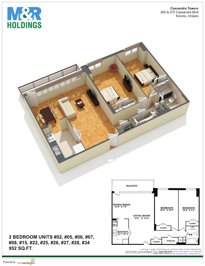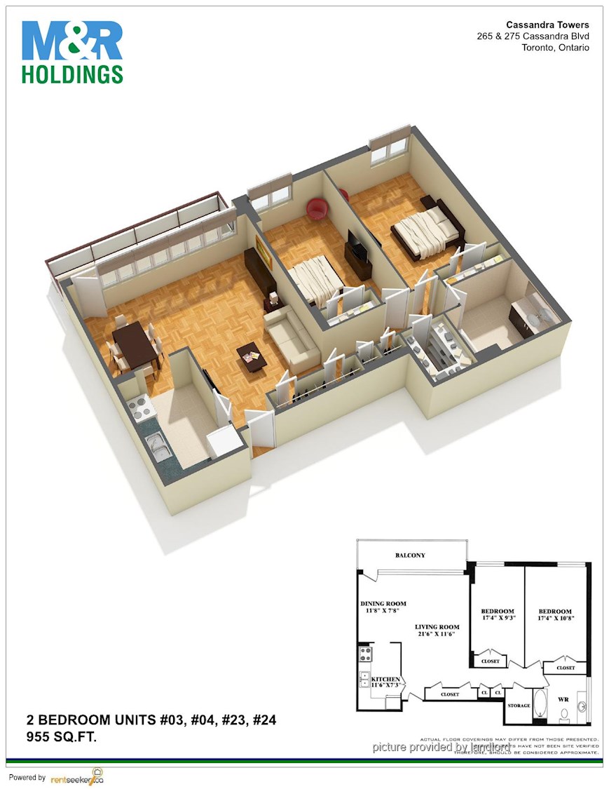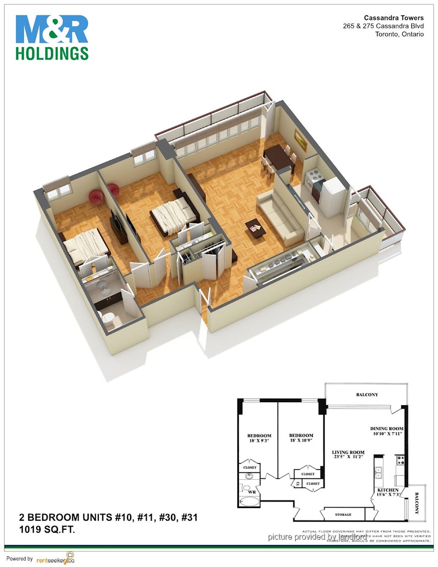 2 Bedrooms apartment. Excellent location Close to churches, library and shopping centre Access to the 401 and DVP Across from park and tennis courts <br/> Visit M & R Holdings form more information.